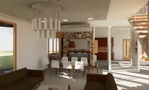 McCullough submitted a project she completed while learning building information modeling (BMI) software in the IARC 311 (Computer-Aided Design for Interior Architecture) course, taught by visiting professor Cam Whitley. In the class, she produced a virtual rendering of a mountain retreat in Fancy Gap, Virginia, for the popular mobile app and website Strava, the “social network for athletes.”